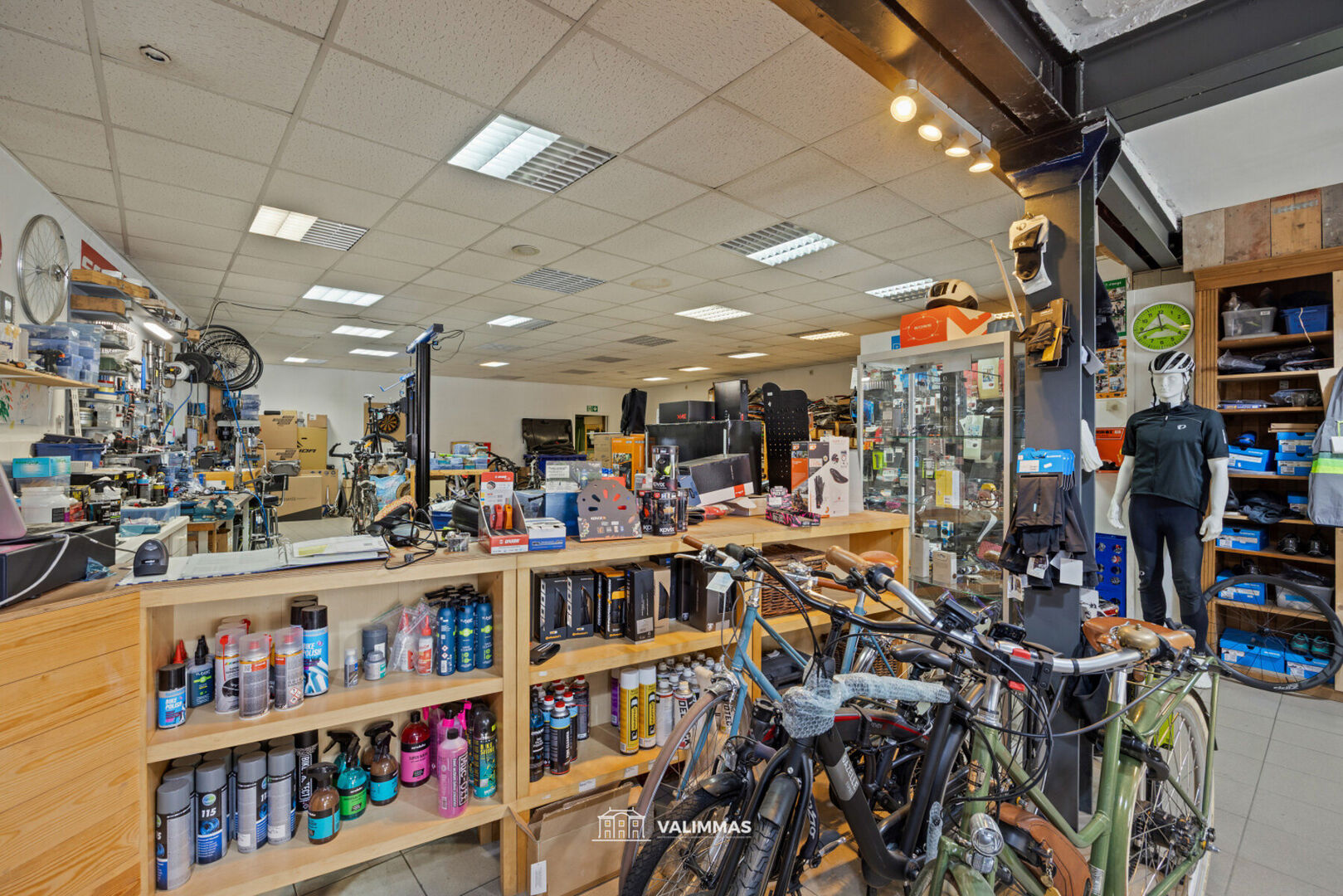 De handelsruimte heeft een oppervlakte van ± 155m². Deze wordt verder aangevuld met een aantal stockageplaatsen (± 60m²), een bureel (± 10m²), en een deels overdekte koer (± 70m²) met tuinberging. Etalage met rolluik. Voorlopig nog in gebruik als fietsenwinkel, maar ook legio andere mogelijkheden !