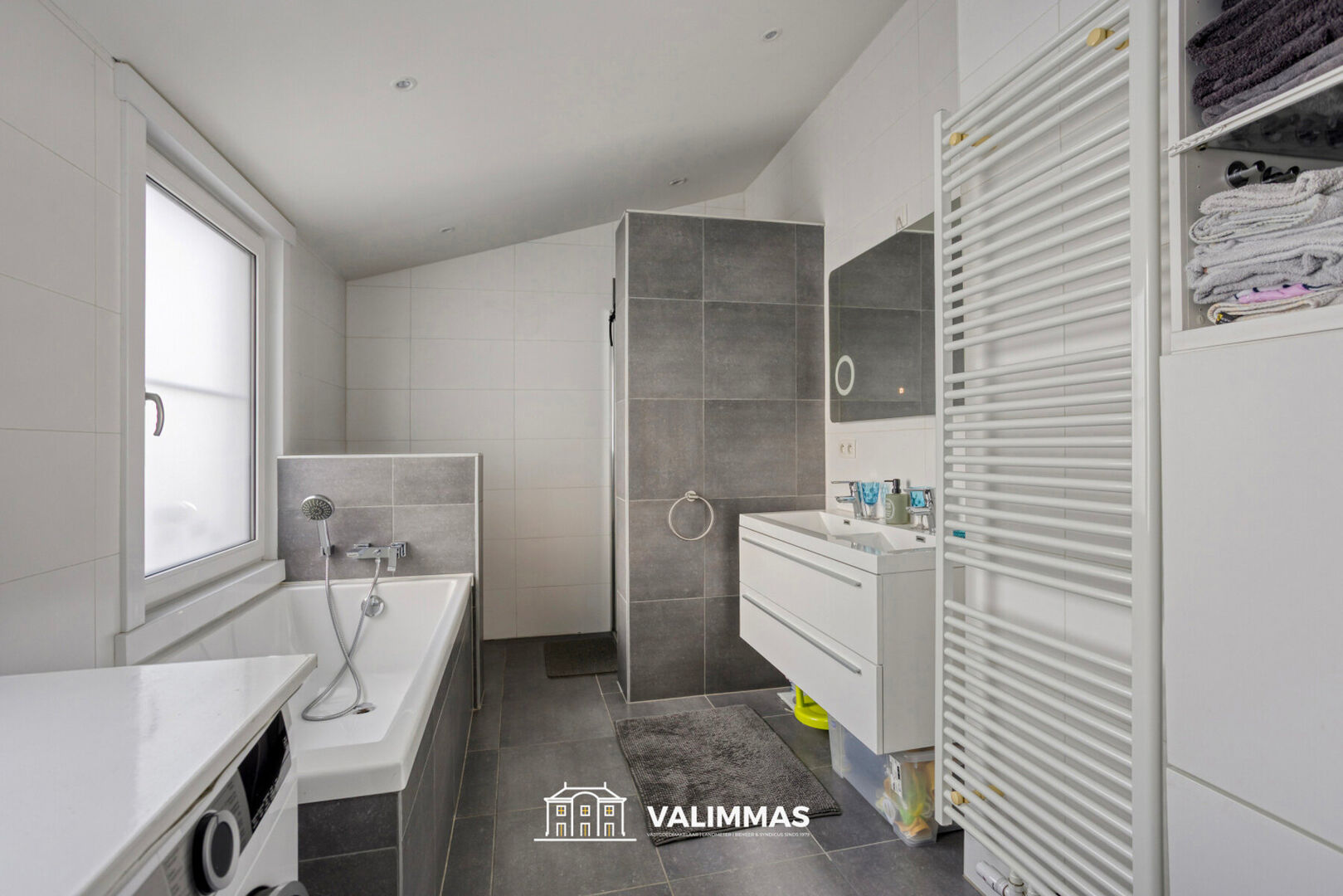 De dakverdieping is bereikbaar met een vast trap en kan nog makkelijk verder ingericht worden tot derde slaapkamer. Het dak werd reeds vernieuwd , geïsoleerd en voorzien van drie velux-ramen.