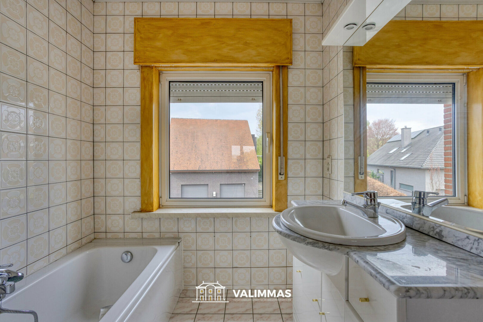 Het gelijkvloers omvat een inkomhal, een living en eetkamer, een ingerichte keuken, een veranda, een wasplaats, een garage en een tuinberging.