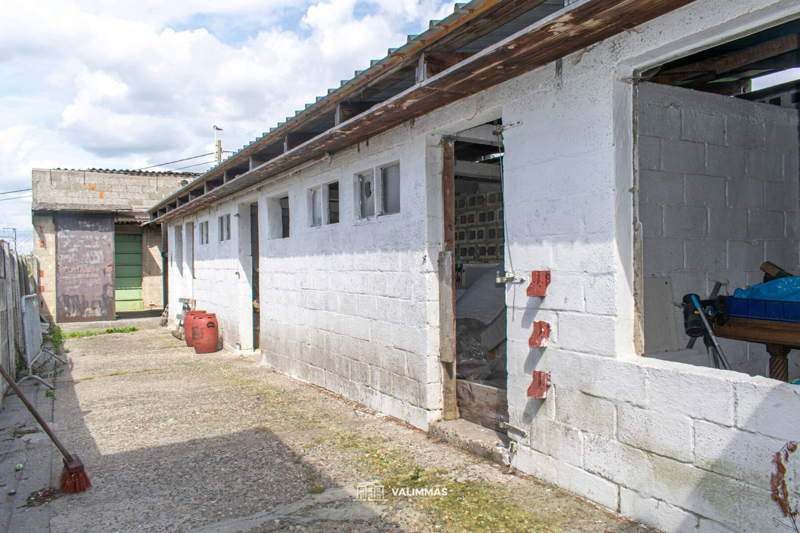 VALIMMAS verkoopt deze welgelegen ruime rijwoning met garage, bijgebouwen/stallingen (± 85m²) en een atelier /garage (±70m² - bereikbaar via achtergelegen Rozenstraat).