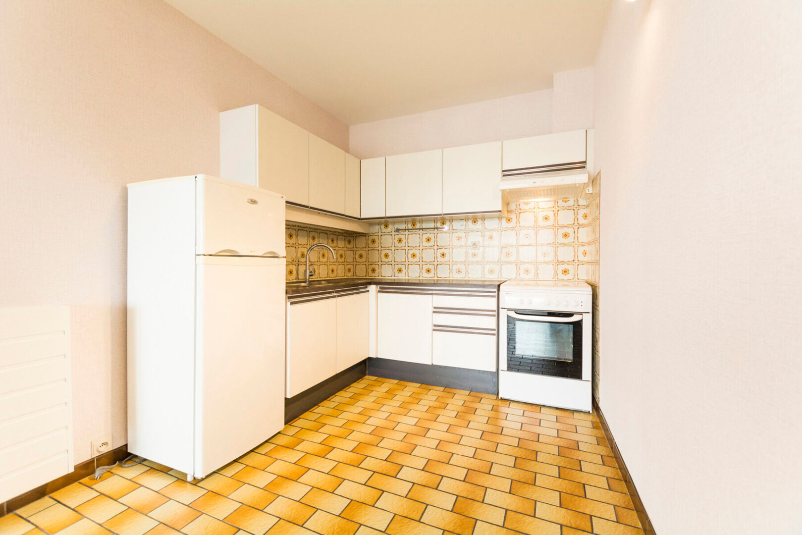 Het appartement bevindt zich op de derde verdieping (met lift) van een verzorgd en kleinschalig gebouw in het volle centrum., en omvat oa. een inkomhal met toilet en vestiaire, een living, een open ingerichte keuken, een badkamer met ligbad, en twee slaapkamers.