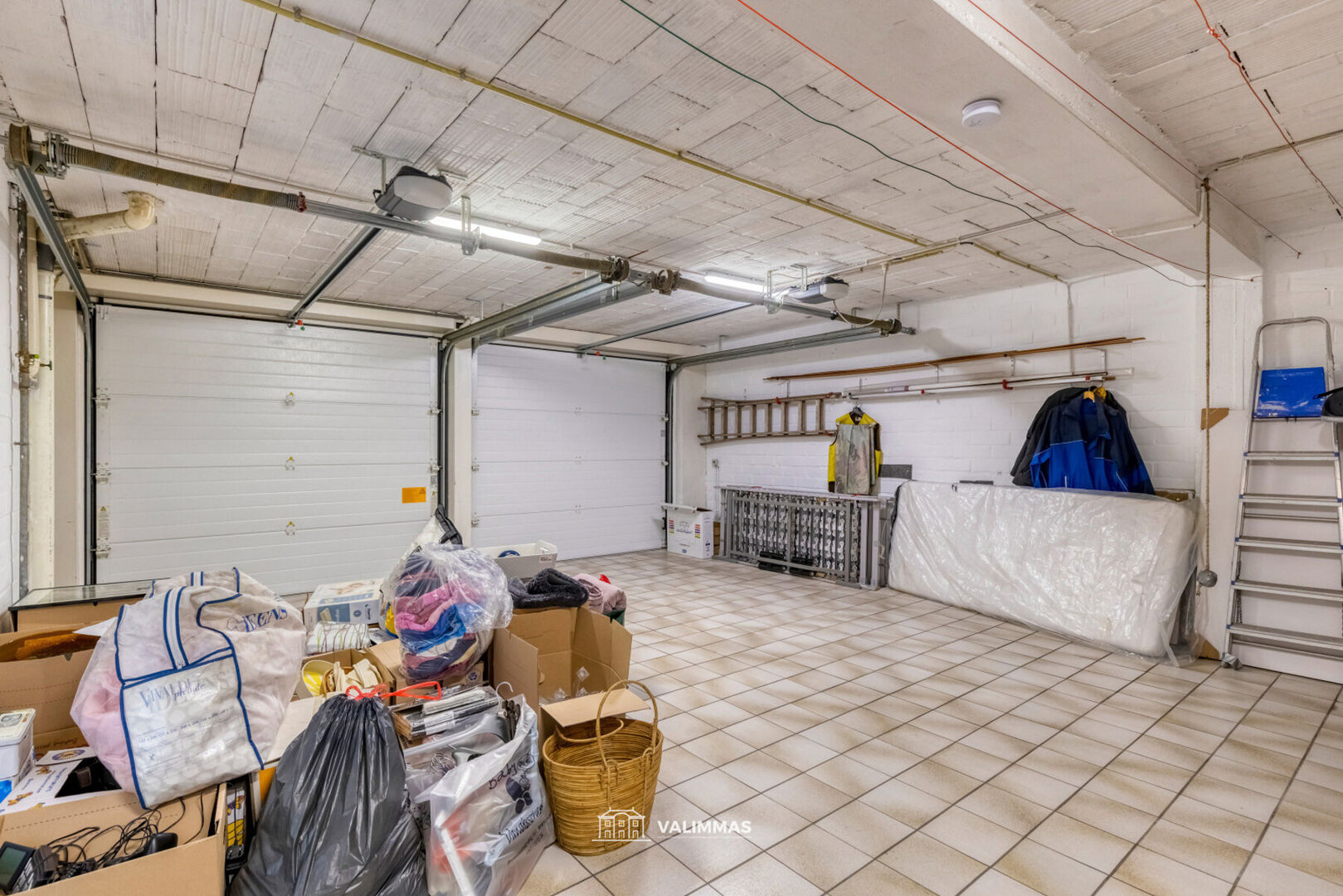 Het gelijkvloers (niveau straat) omvat een dubbele garage, een berging, een wasplaats, een een toegang naar de tuin via een buitentrap.