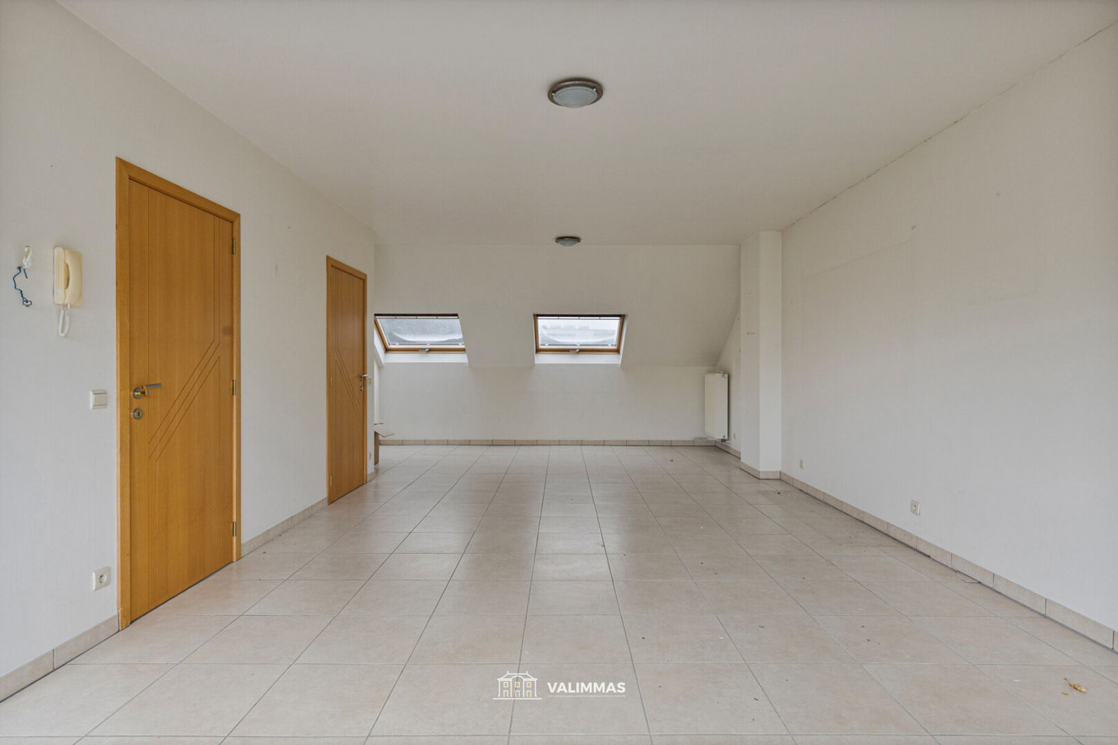De dakverdieping omvat een overloop met lift, een zeer ruime kamer (± 50m²) en een (desgewenst nog verder in te richten) badkamer.