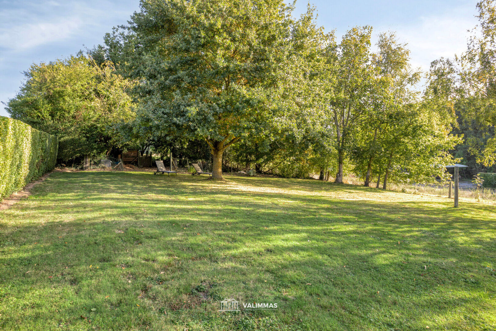 Achteraan, in een oase van rust, vinden we nog het terras en de grote tuin met tuinberging en hondenkennel.