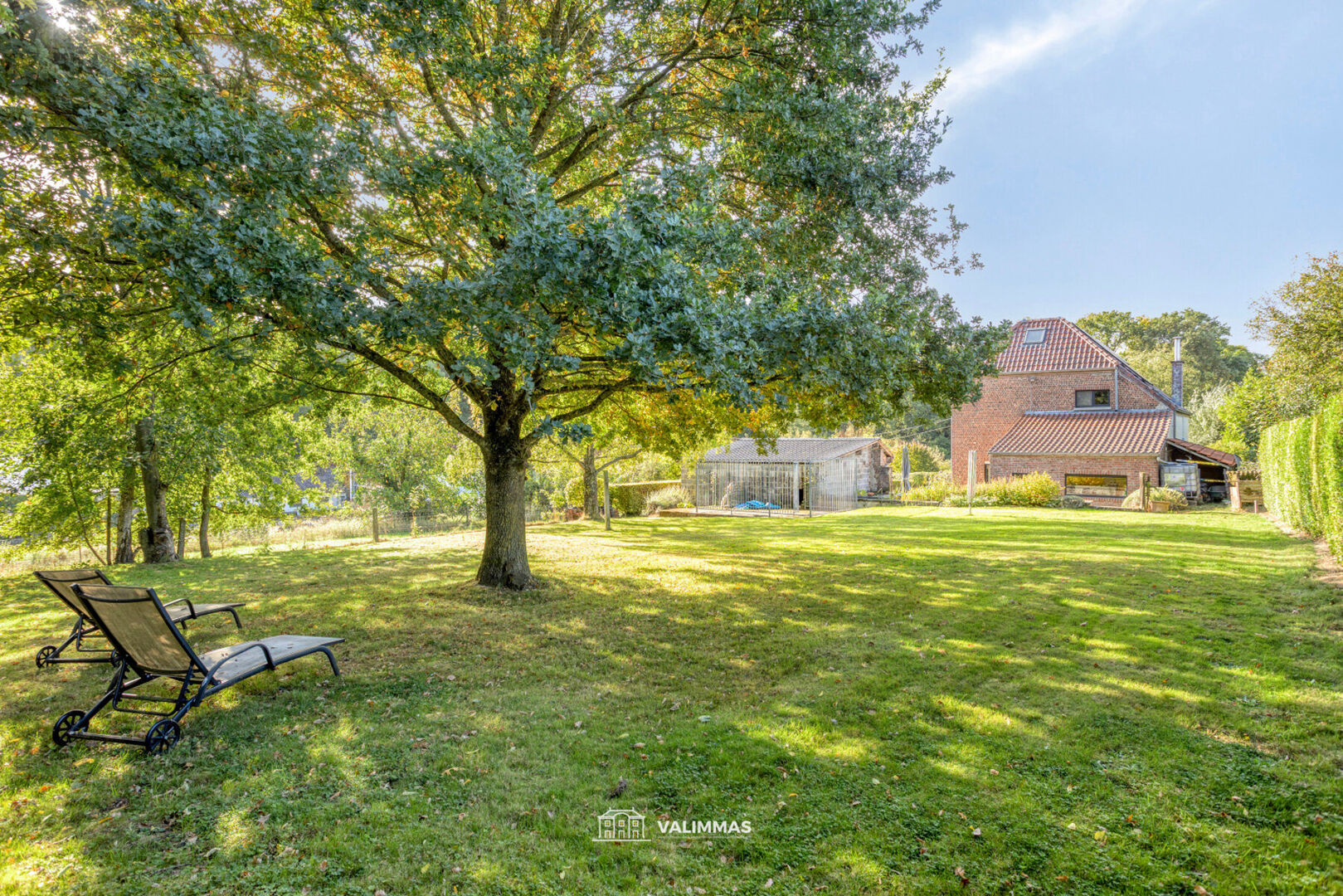 Achteraan, in een oase van rust, vinden we nog het terras en de grote tuin met tuinberging en hondenkennel.